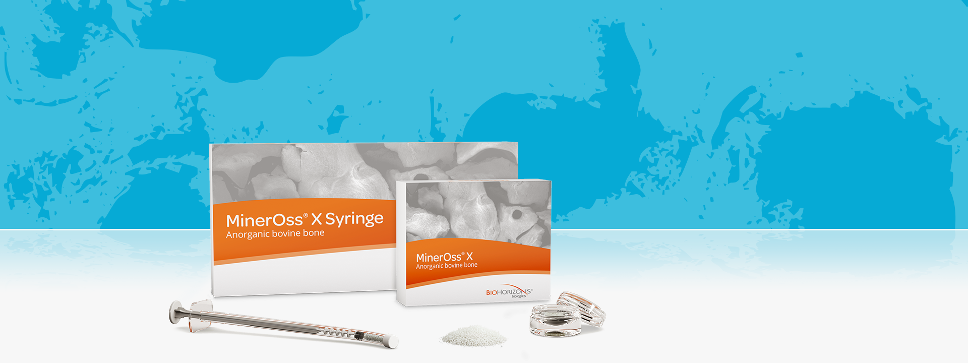 MinerOss X ist eine anorganische bovine Knochenmineral-Matrix, die der Mineralstruktur des menschlichen Knochengewebes ähnelt. MinerOss X ist als Corticalis- oder als Spongiosa-Granulat sowie in Blockform mit einem Zusatz von 5% bovinem Kollagen erhältlich. Die komplexe trabekuläre Architektur und natürliche Konsistenz ermöglichen eine langfristige Zelokklusion für ein neu zu bildendes Knochengerüst.