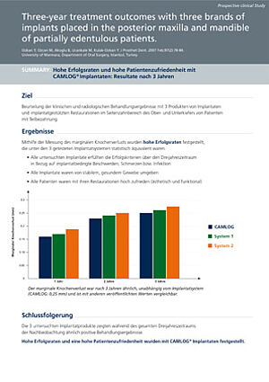 In diesem Bereich finden Sie die wissenschaftlichen Dokumentationen, Sonderpublikationen sowie Fallberichte zu den Produkten von Camlog. Die Sonderdrucke und die darin enthaltenen Abbildungen sind urheberrechtlich geschützt. Jede Verwertung außerhalb der durch das Urheberrecht festgelegten Grenzen ist ohne Zustimmung der jeweiligen Verlage und Autoren nicht zulässig.