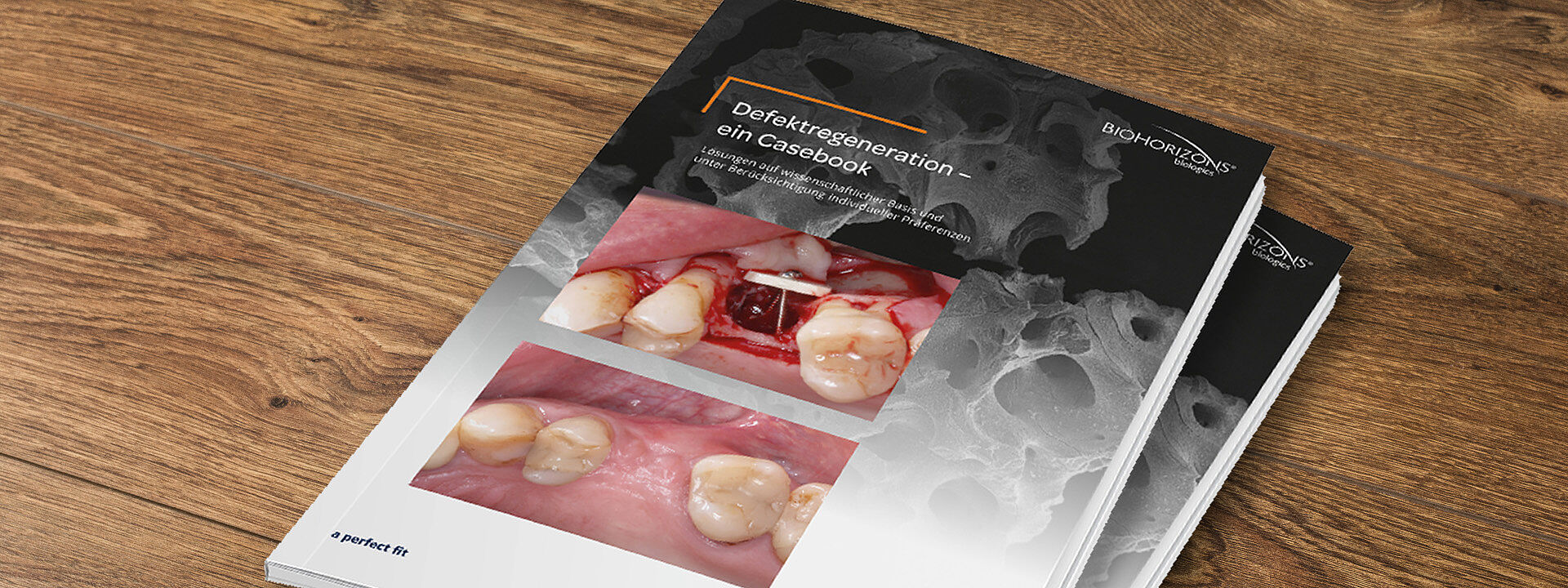 Das in dieser Form erstmalig aufgelegte Casebook zur Defektregeneration zeigt in einer Sammlung von Fallberichten namhafter Autoren die mannigfaltigen Optionen für die Rekonstruktion von Hart- und Weichgewebedefekten. Hinweise zu chirurgischen Konzepten und Techniken sowie ergänzende Informationen zu den unterschiedlichen Regenerationseigenschaften der BioHorizons Camlog Biomaterialen sollen die Entscheidungsfindung für das entsprechende Produkt erleichtern.