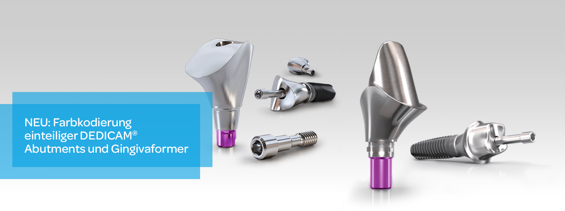 Die Farbkodierung der vorgefertigten Implantat-Abutment-Verbindung mit Schraubenkanal entspricht unserem Farbschema für die Implantatdurchmesser, wodurch eine einfache Zuordnung der einzelnen Komponenten möglich ist. Die farbkodierten Rohlinge erfüllen qualitativ und funktional dieselben Anforderungen wie die bisherigen Produkte, sodass Sie diese wie gewohnt weiterverarbeiten können.