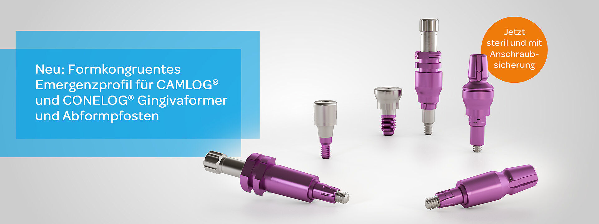 Passend zu den Designs der Gingivaformer wurden die Abformpfosten für die CAMLOG® und CONELOG® Implantatsysteme modifiziert. Ab sofort sind die folgenden neuen Abformpfosten erhältlich.
