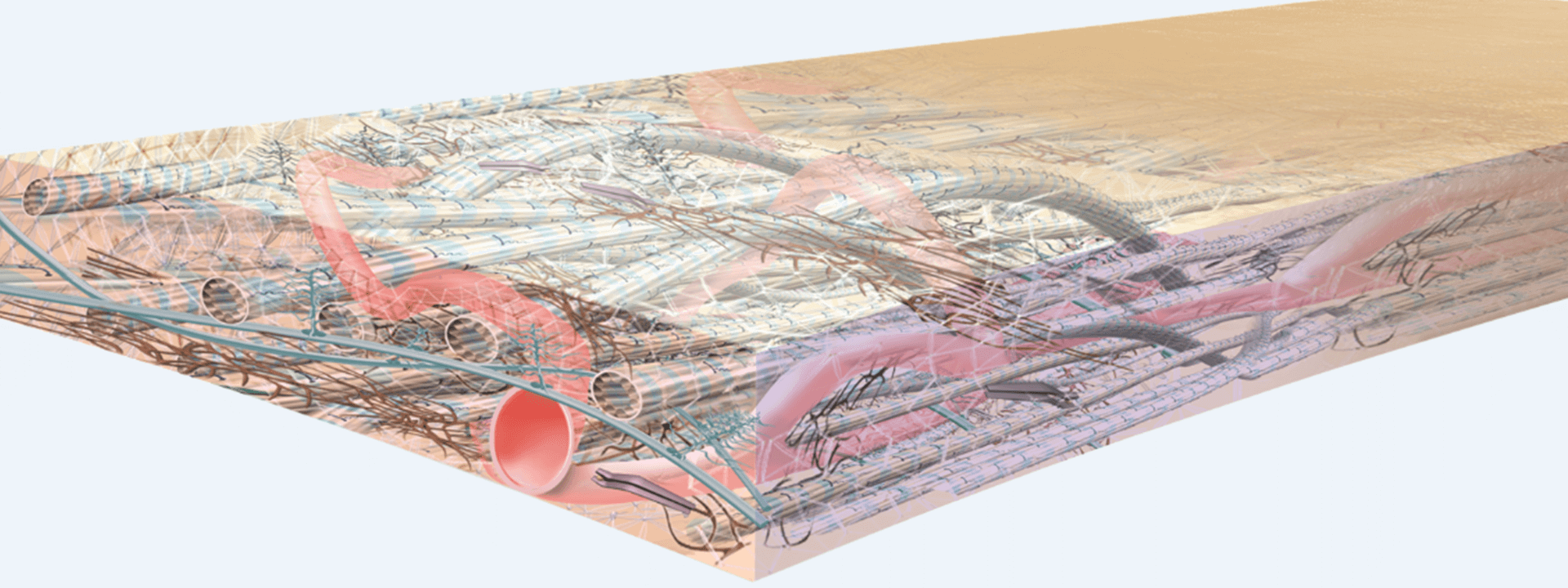 Abb. 1: Komplexer azellulärer heterogener Zellgerüst- und Blutgefäßaufbau.