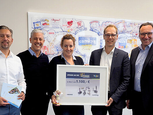 CAMLOG Mitarbeiter erweisen sich treffsicher: 110 Treffer an der Benefiz-Torwand erzielen 1.100 € für die Sterneninsel.